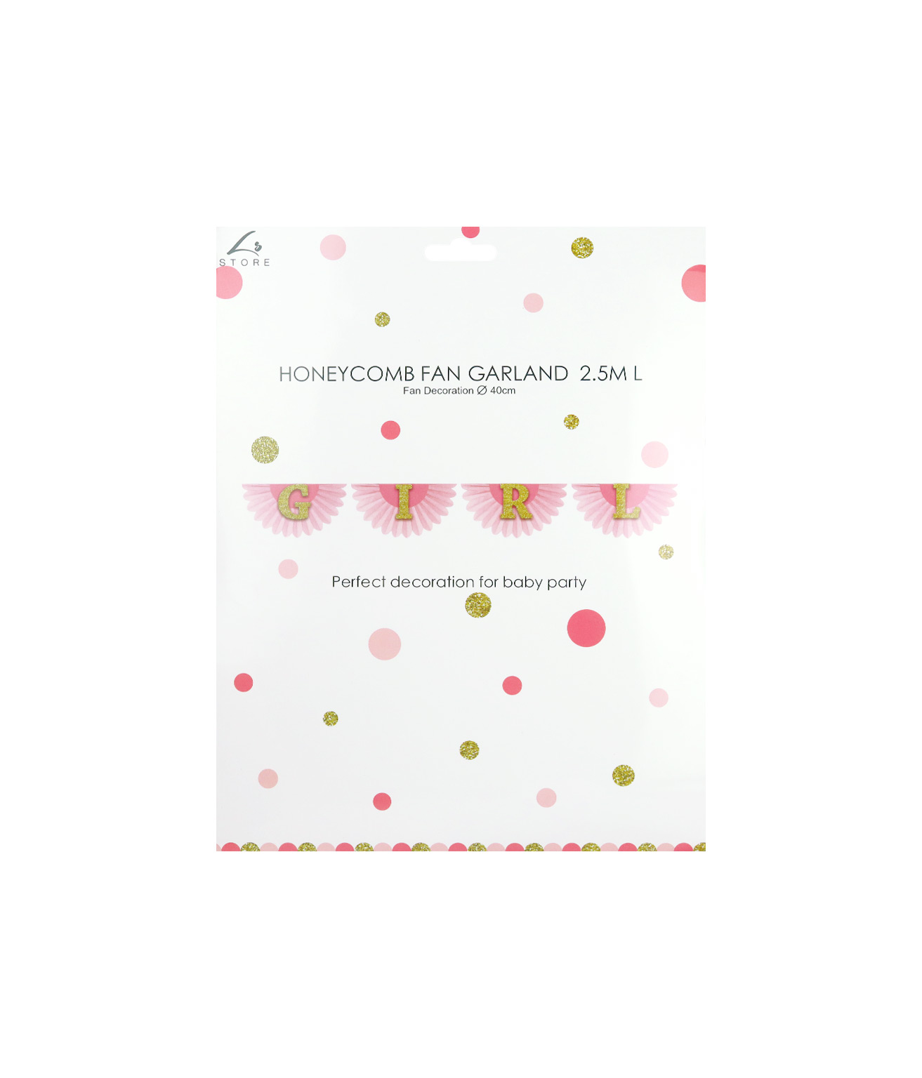 Featuring our honeycomb fan garland which says “Girl”.