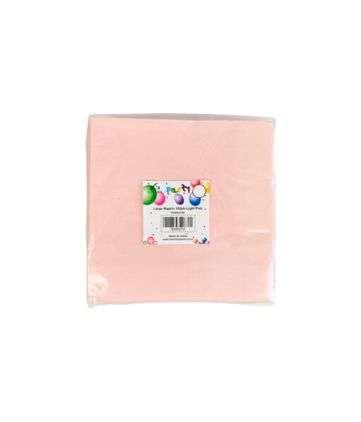 This pack of 100 Large Light Pink Napkins (33×33cm) is a disposable, soft paper tableware item, perfect for adding a gentle, elegant touch to parties, weddings, and everyday meals.