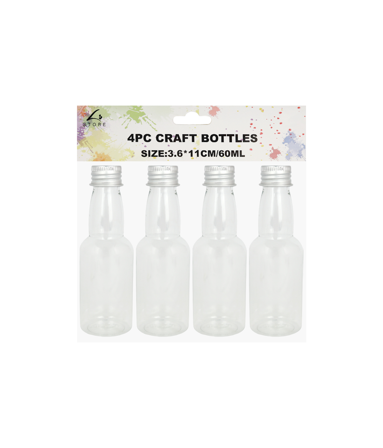 This 4-pack set includes 60ml bottles, ideal for holding paints, glues, inks, or other small liquids.