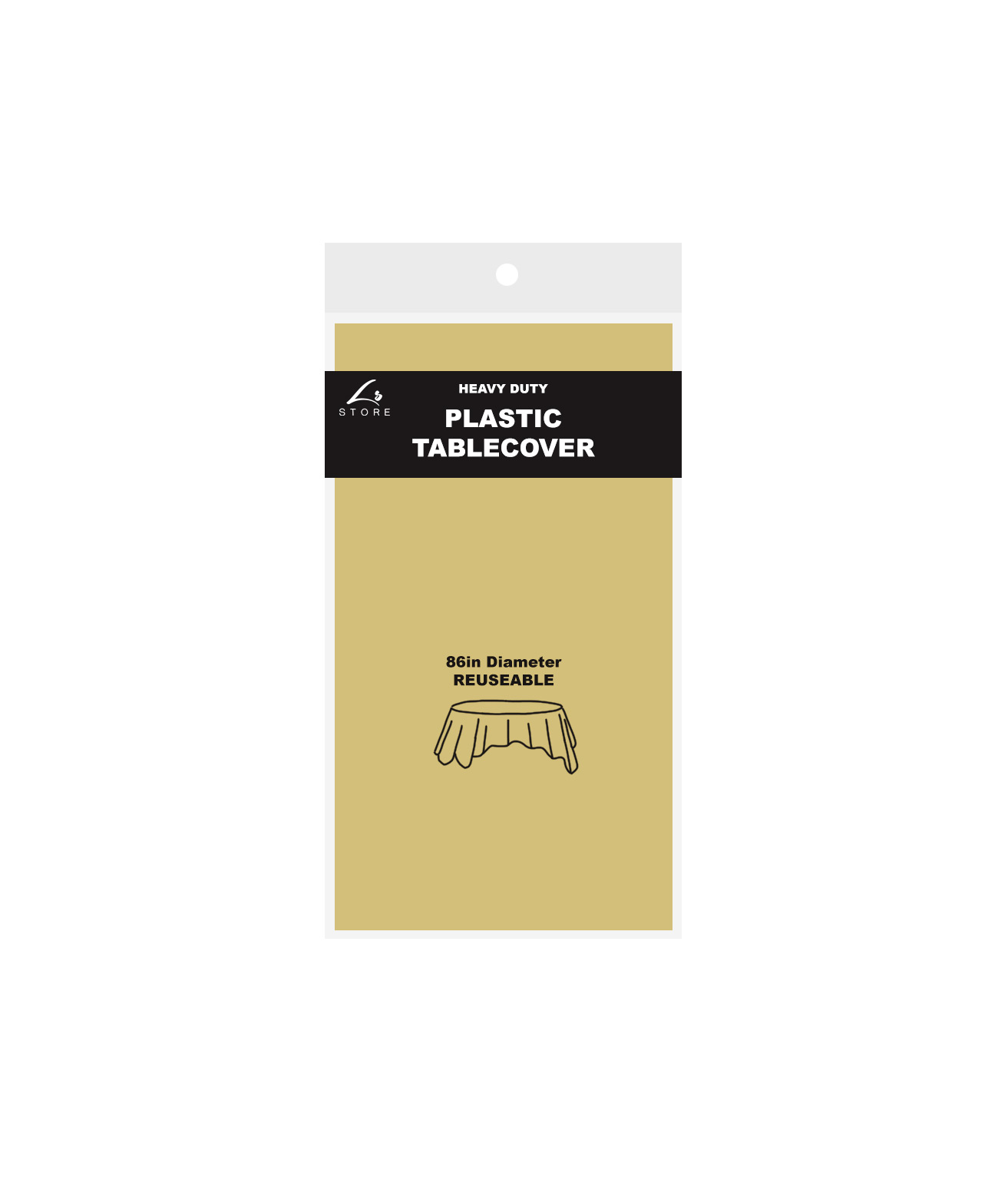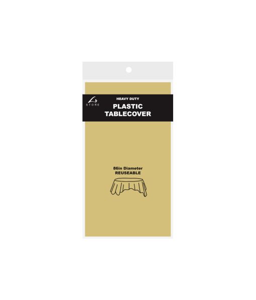 Our round plastic round tablecover serves as a colorful foundation for the whole display.