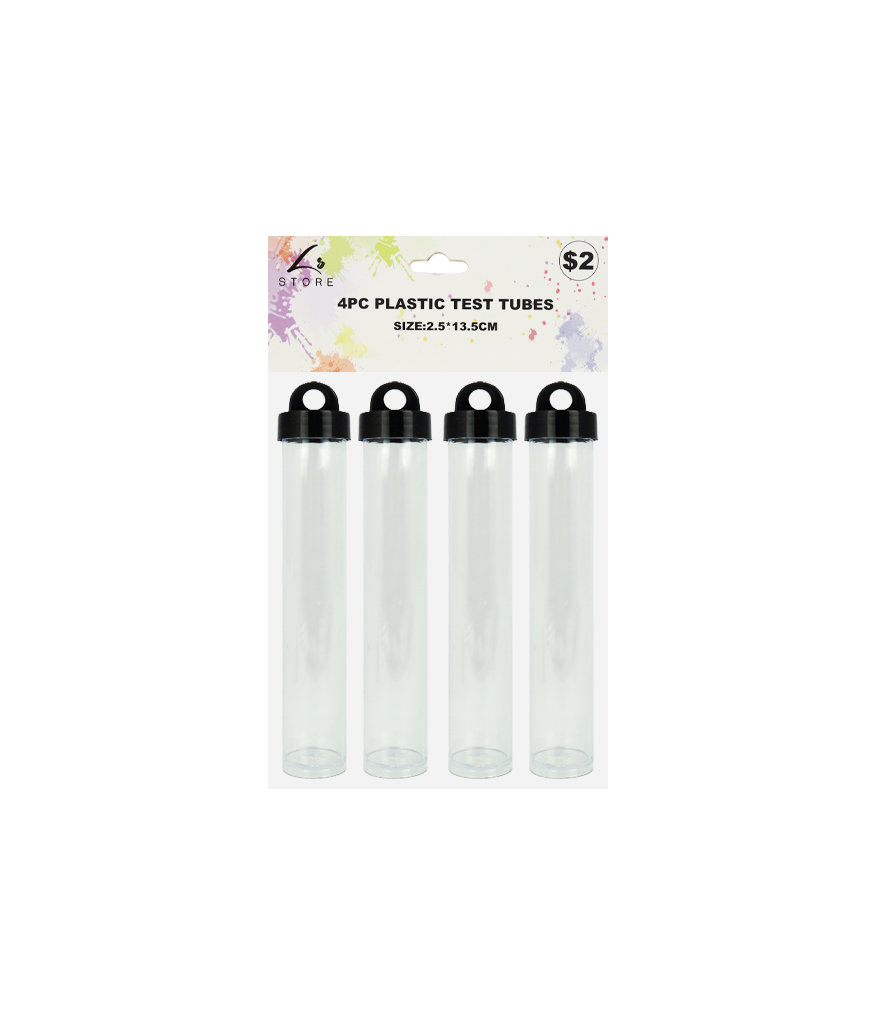 This 4-pack set includes 13.5cm test tubes with secure hanging lids, ideal for storing small liquids, powders, or samples.