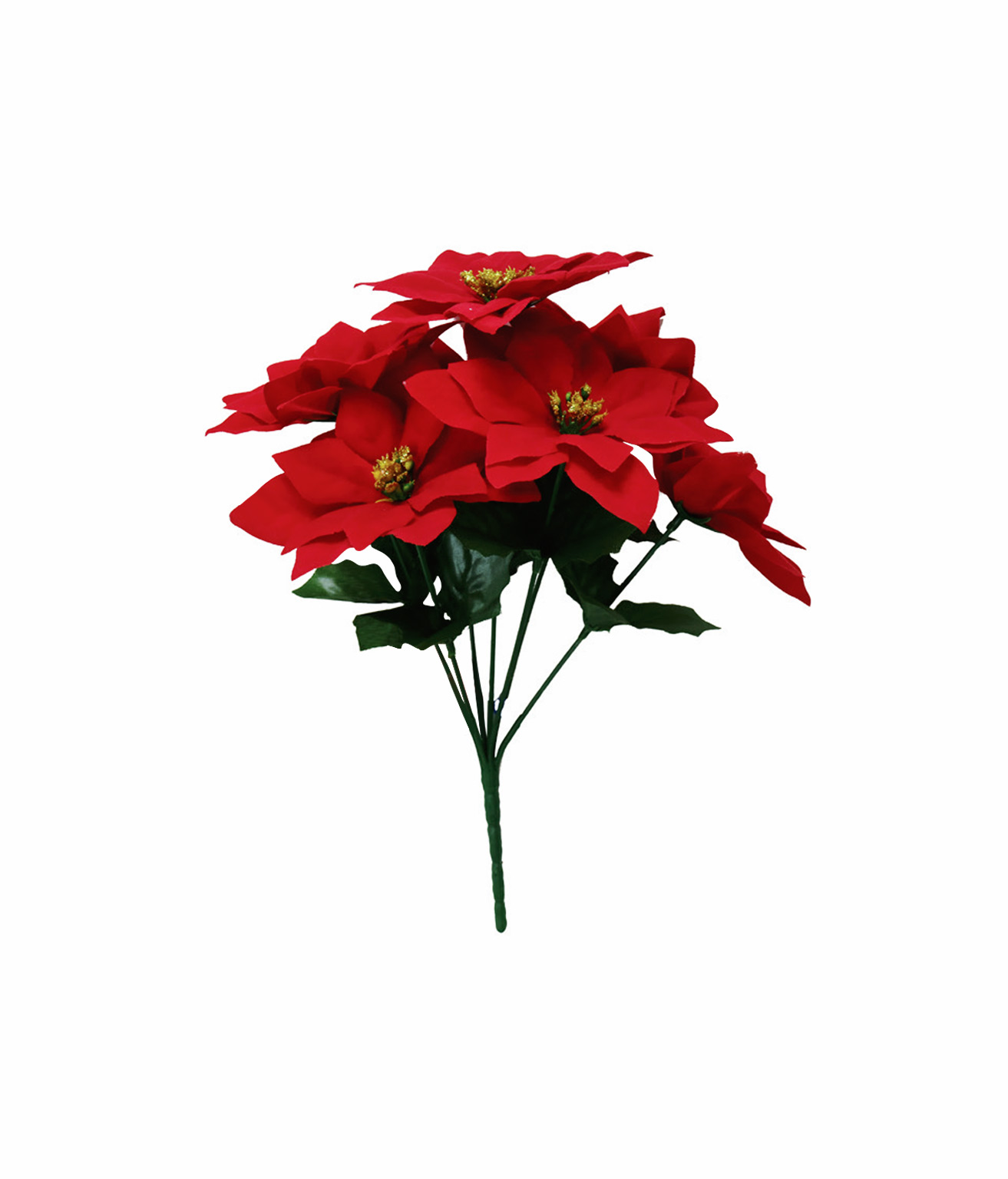 Bring festive elegance to your decor with our Poinsettia Bunch Flocked 7 Head 30cm.