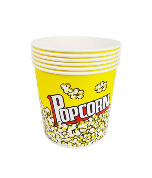 Large capacity popcorn cups designed for serving popcorn and snacks at parties and events.