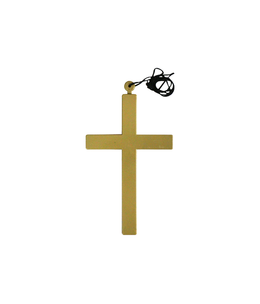 This gold cross necklace makes a great accessory for a priest or nun costume or any Halloween theme dress ups.