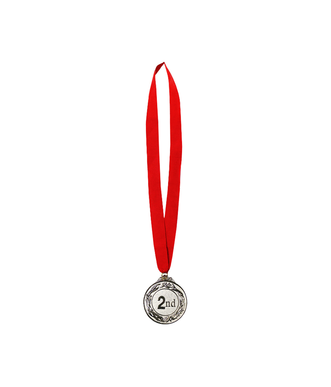 This medal features a silver finish and comes attached with a ribbon, making it a great party favour for games, competitions, or team events.