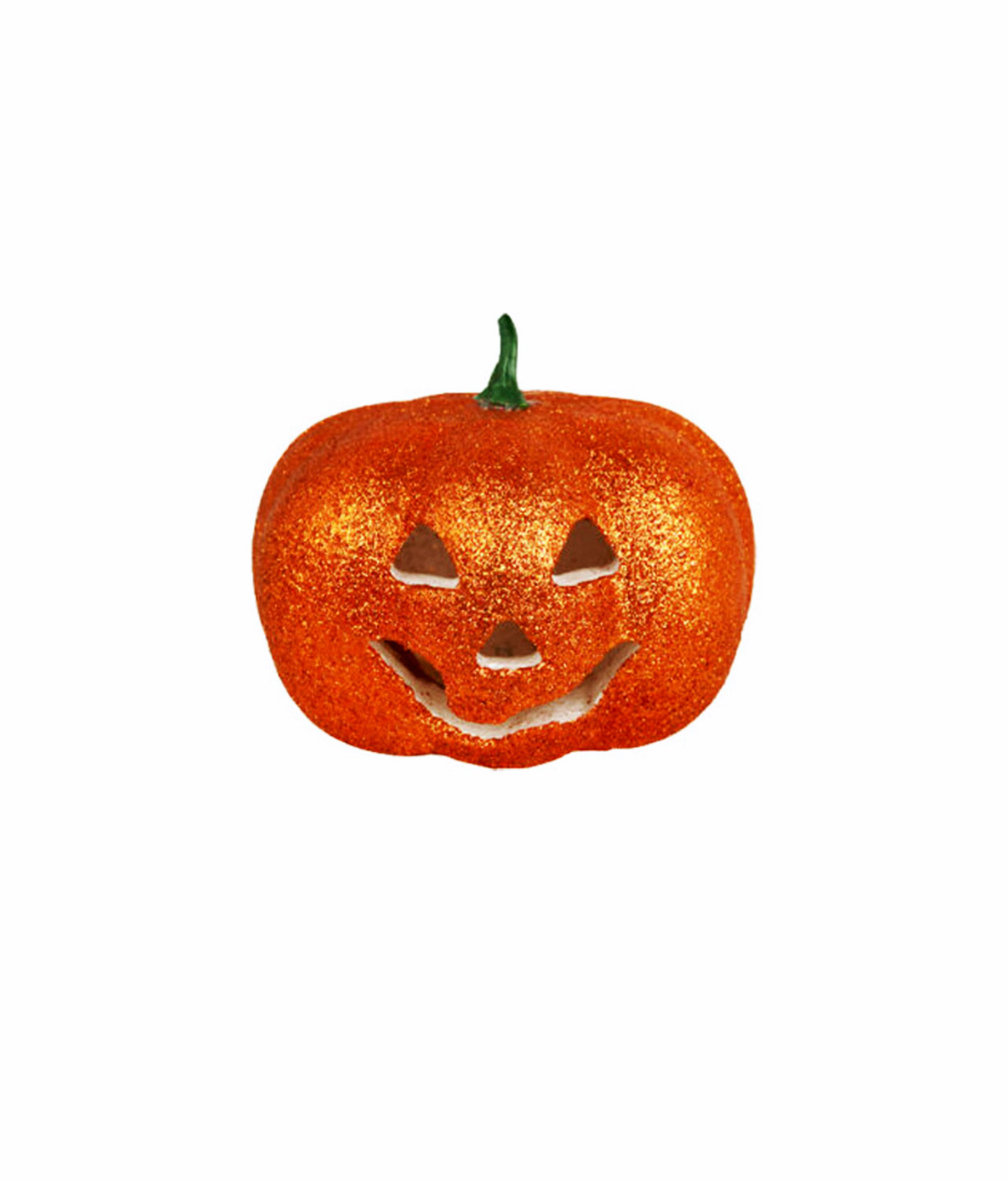 This glittery orange pumpkin features a light-up LED core that adds a warm festive glow to your Halloween display.