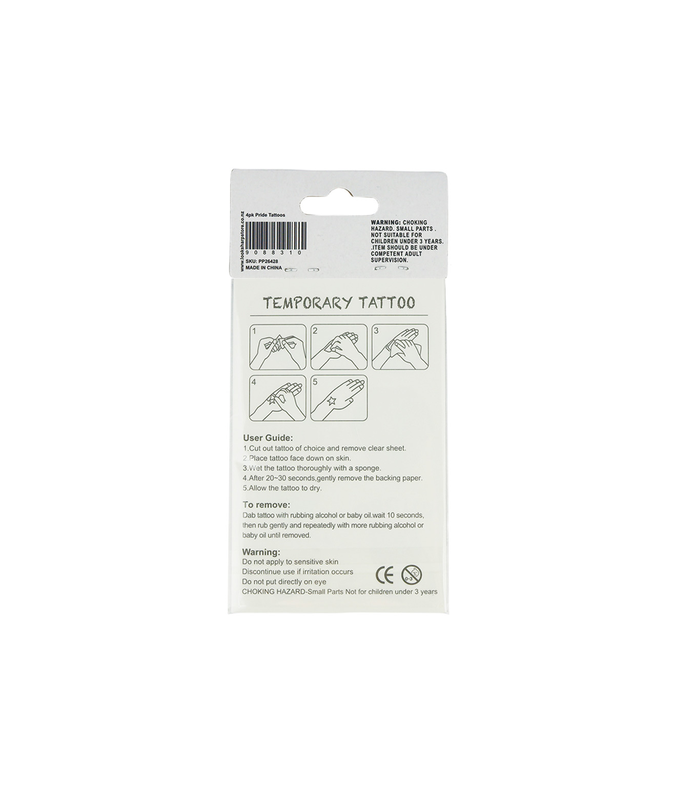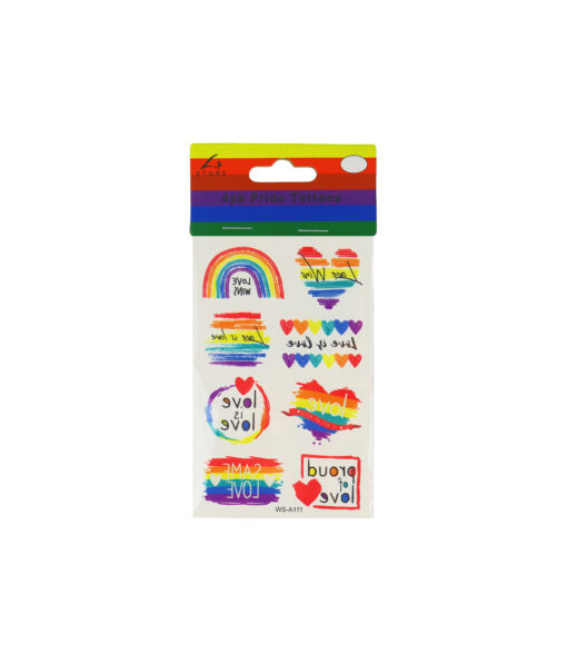 The pack includes 4 sheets of tattoos, making them great for sharing with friends or for use at Pride events, parties, or festivals.