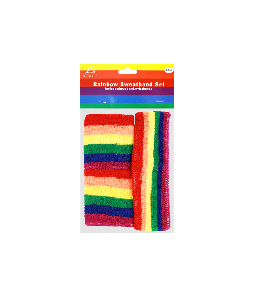 Featuring our rainbow sweat band set.