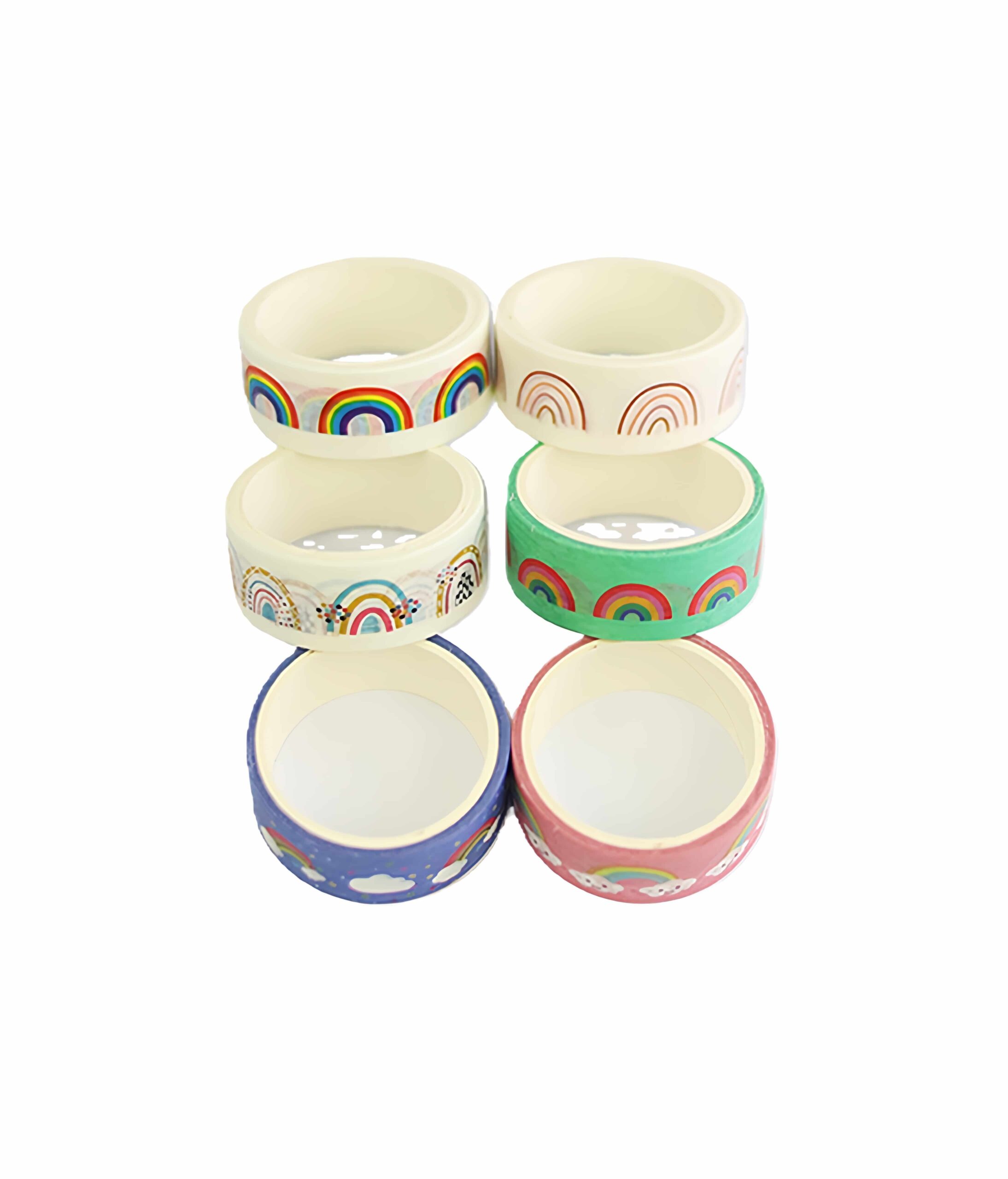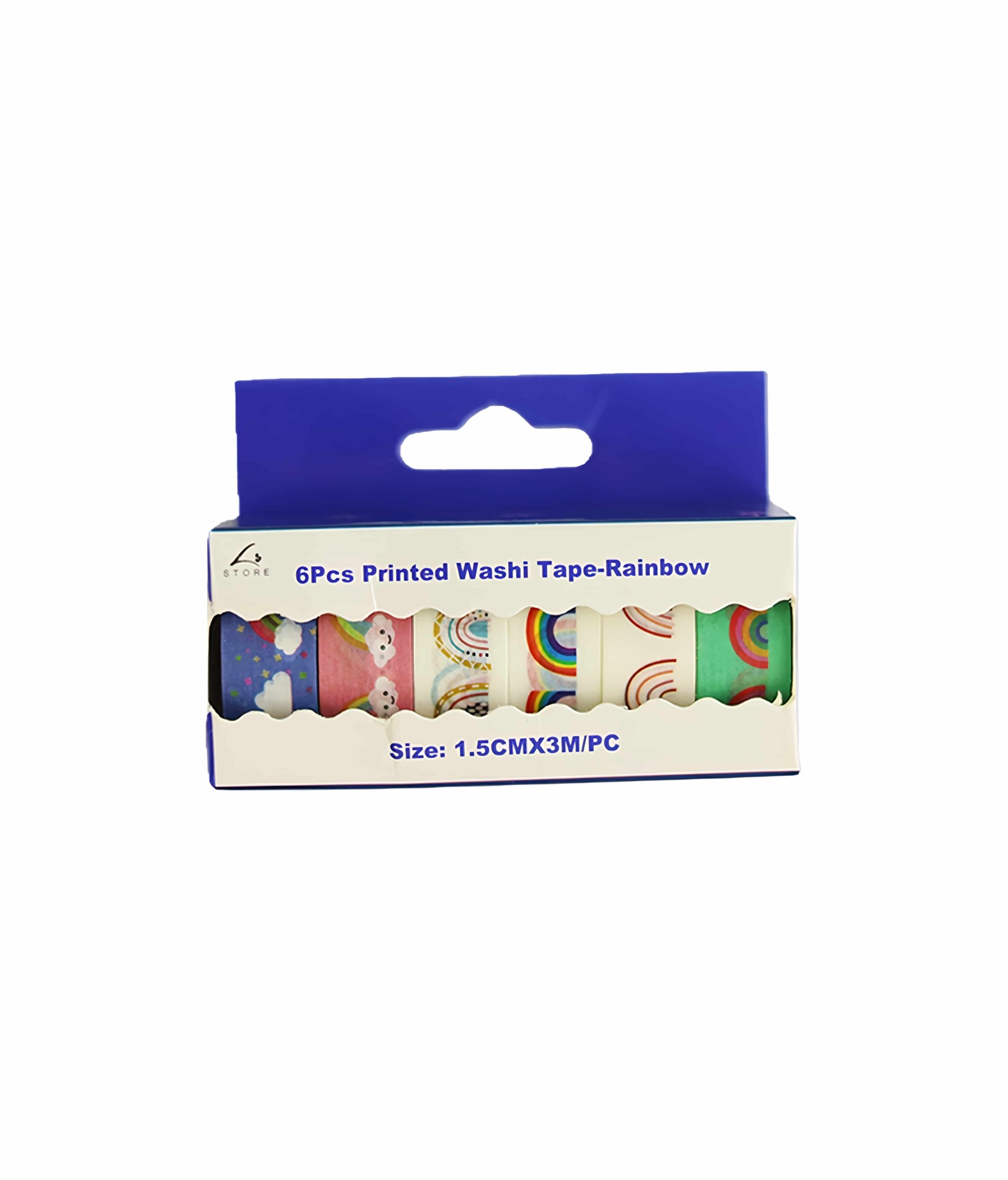 Set of six washi tapes with assorted colors and designs.