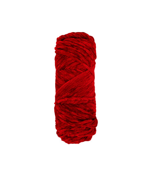 Our Red Chenille Yarn weighing 95g, perfect for knitting, crocheting, and a variety of soft craft projects.