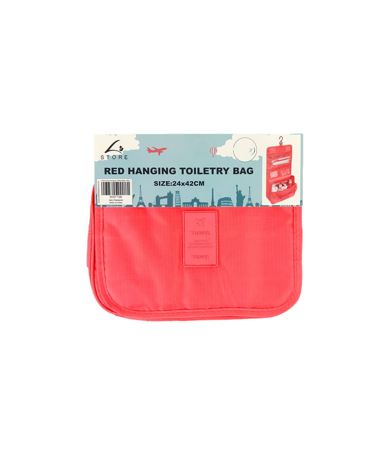 This Hanging Toiletry Bag (24×42cm) is a practical, travel-friendly organizer designed to keep toiletries, cosmetics, and grooming essentials neat and accessible, featuring a foldable design and sturdy hanging hook.