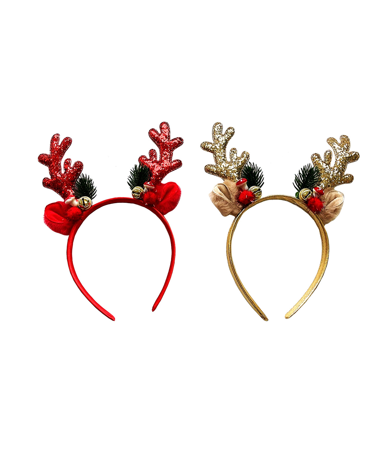 Featuring glittery antlers and soft ears, this playful headband is perfect for festive fun and cheerful celebrations.