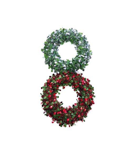 Add a sparkling touch to your holiday decor with this Red / Silver Tinsel Wreath Assorted 30cm.