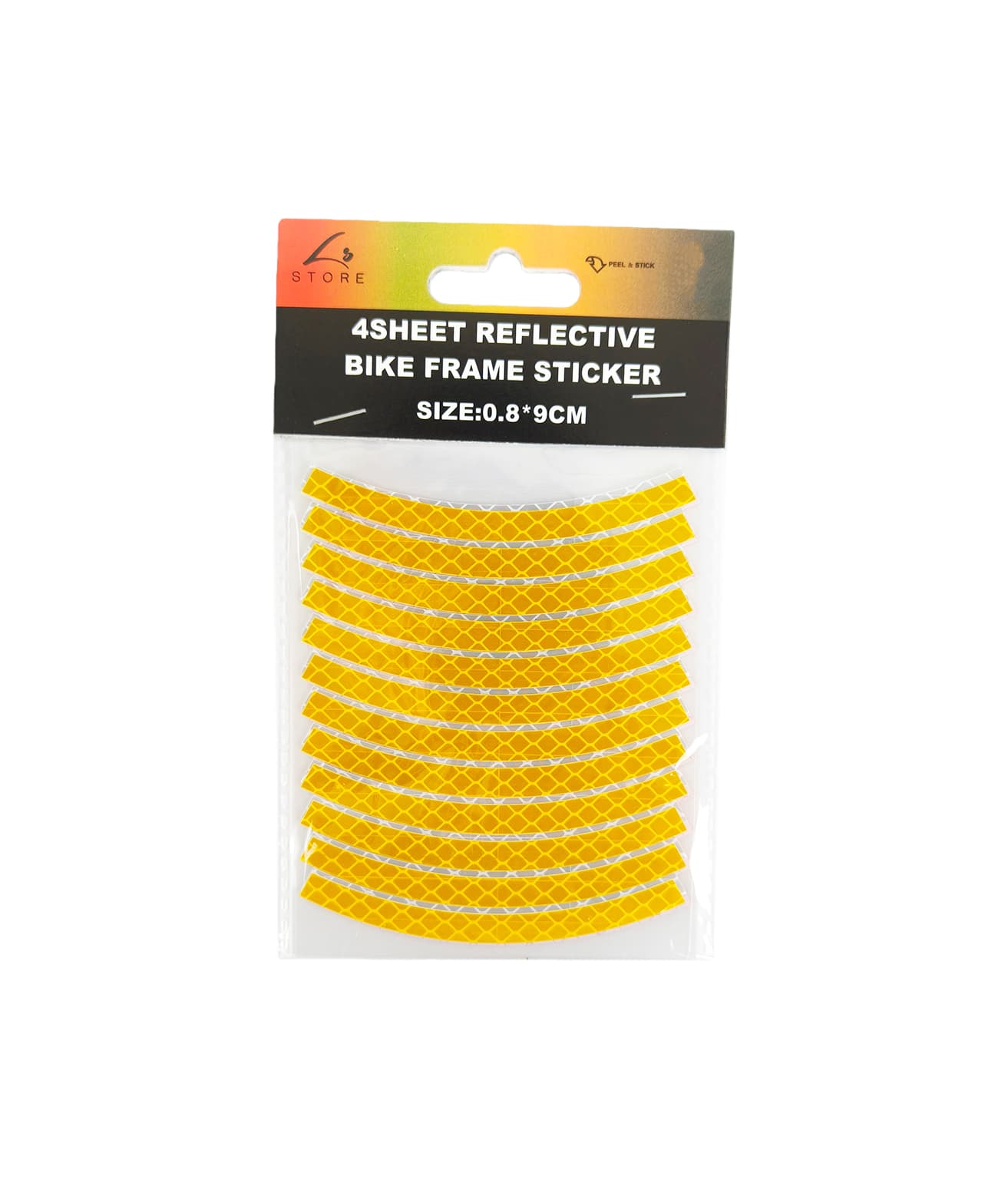 This 4-sheet Reflective Bike Frame Sticker Set (0.8×9cm) is a safety accessory designed to increase your visibility during low-light cycling, with vibrant, curved stickers that fit seamlessly on bike frames and wheels.