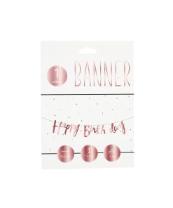 Add some colour to your party with our rose gold happy birthday banner which comes with twine ribbon.