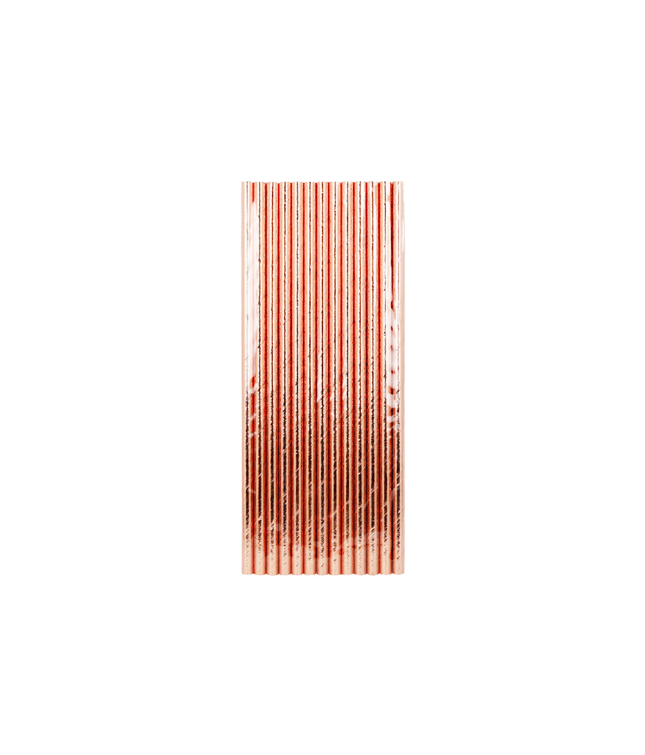 A pack of 25 rose gold paper straws perfect for parties, events, and special occasions.