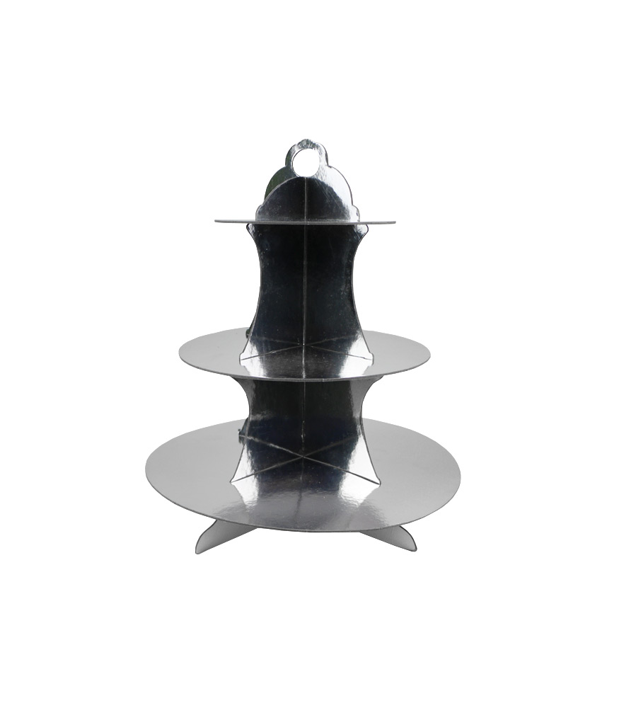 Coming in a metallic silver design, this 3 tier cake stand makes a great display for your cakes, cupcakes and other desserts.