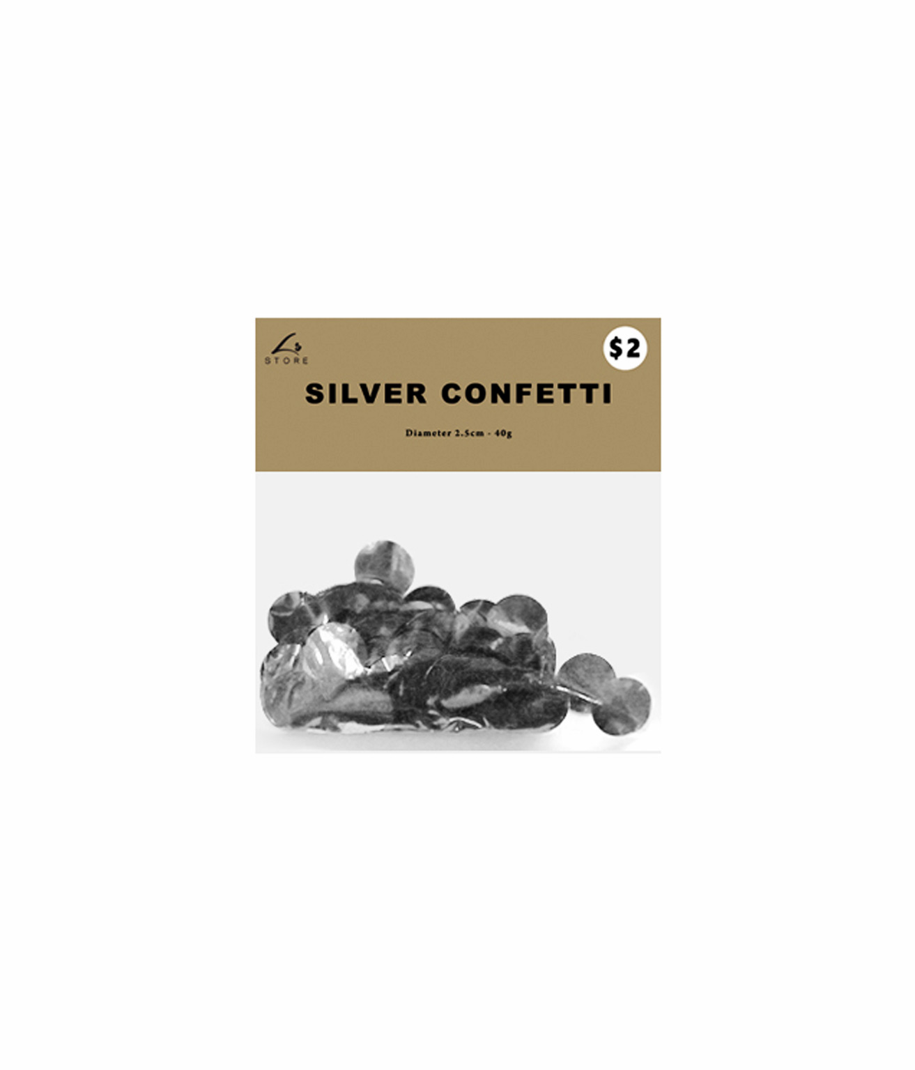 This 40g pack of shimmering silver confetti is perfect for adding a festive and elegant flair to any event.