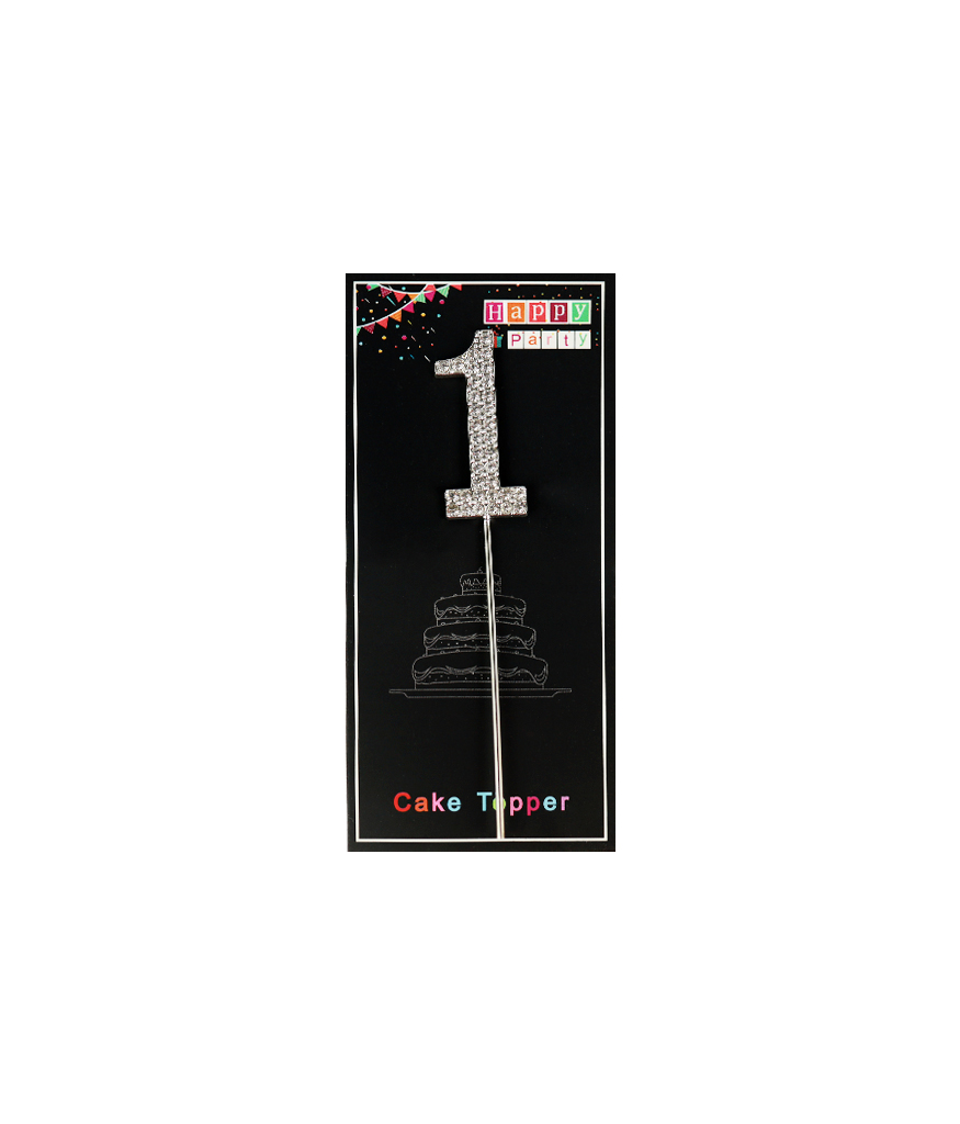 This shining cake topper has a number 1 decorated with diamonds and silver plating.