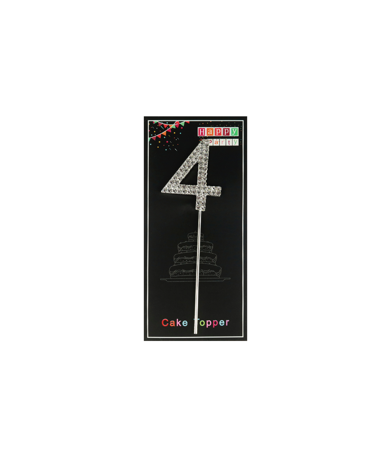 This shining cake topper has a number 4 decorated with diamonds and silver plating.