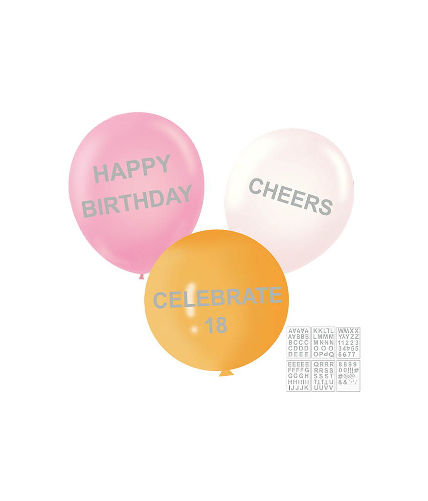Featuring our silver colour foil balloon stickers which comes in 6 sheets of letters & numbers.