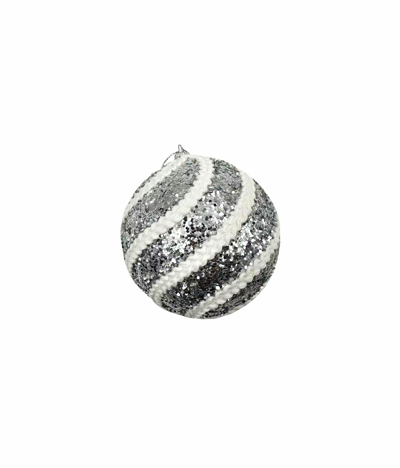 Add a modern and elegant touch to your festive decor with the Silver With White Rope Christmas Ball 8cm.
