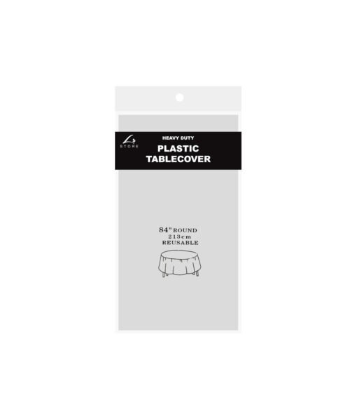 Our heavy duty plastic table cover measuring 213x213cm.