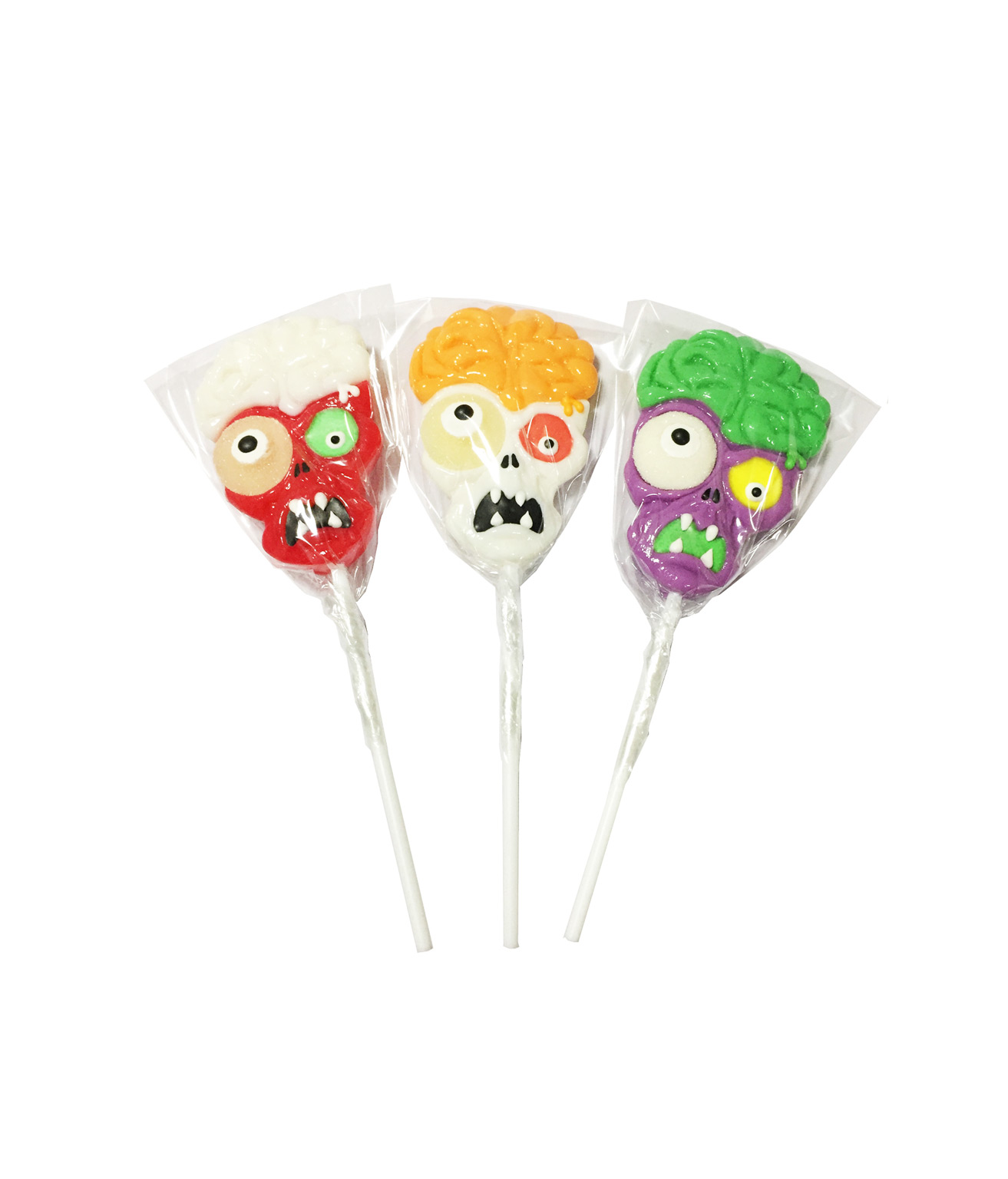 Our Skull Pop with Brain comes in assorted colour design lollipop sticks.