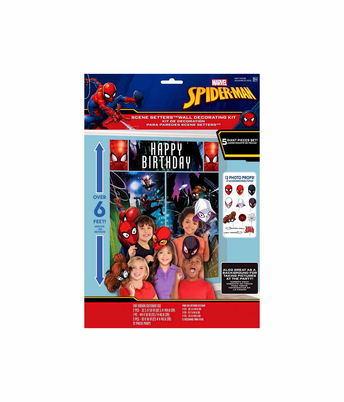 Featuring a large Spider-Man scene and fun cutouts, it’s perfect for decorating party spaces or capturing memorable moments.