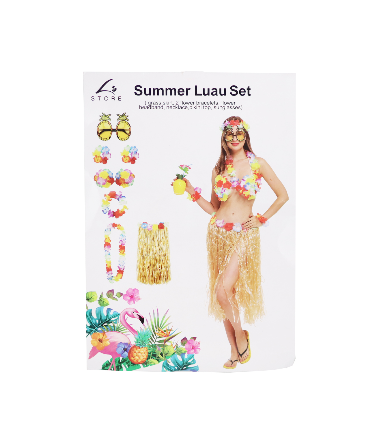 Featuring our summer luau set costume dress-up kit for adults, perfect for a summer or Hawaii party!