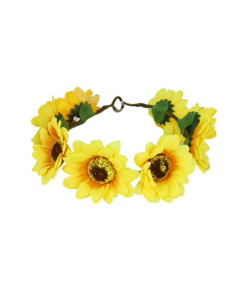 Featuring our sunflower crown headband which includes a wreath of yellow sunflower design shaped flowers & leaves.