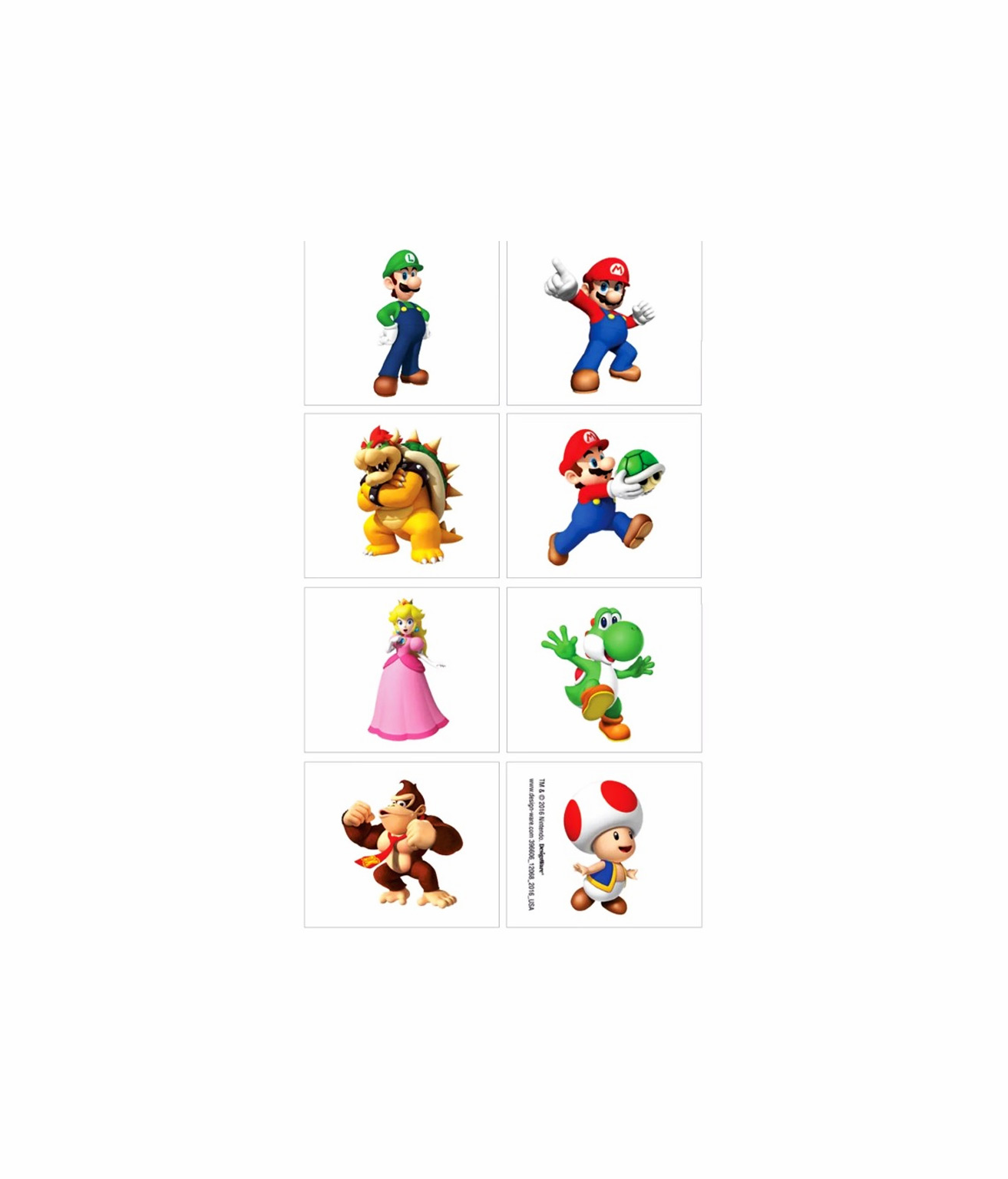 Featuring fun designs of Mario, Luigi, and friends, these temporary tattoos are a hit in loot bags or as party activity fun.