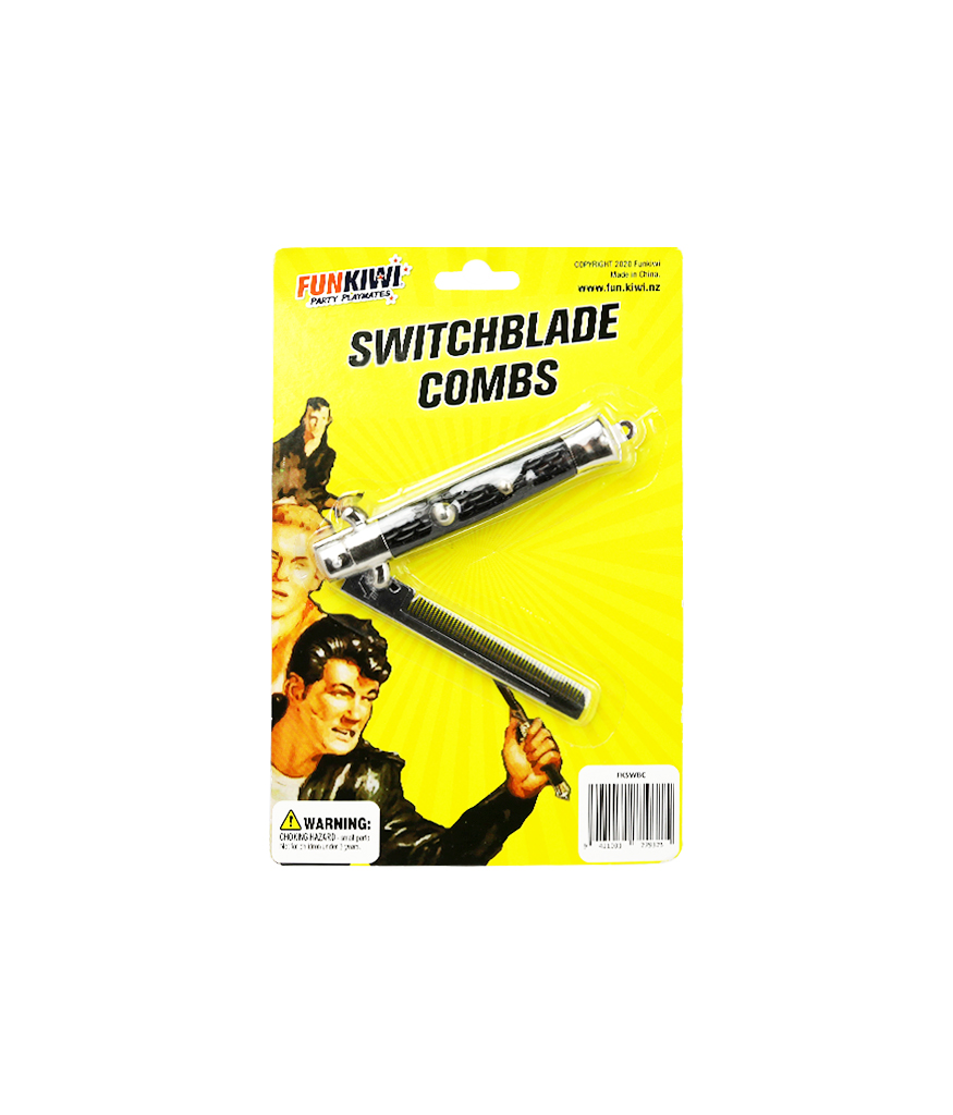 Featuring our Switch Blade Comb. The perfect accessory or toy for your next Party! Comb your hair in style!