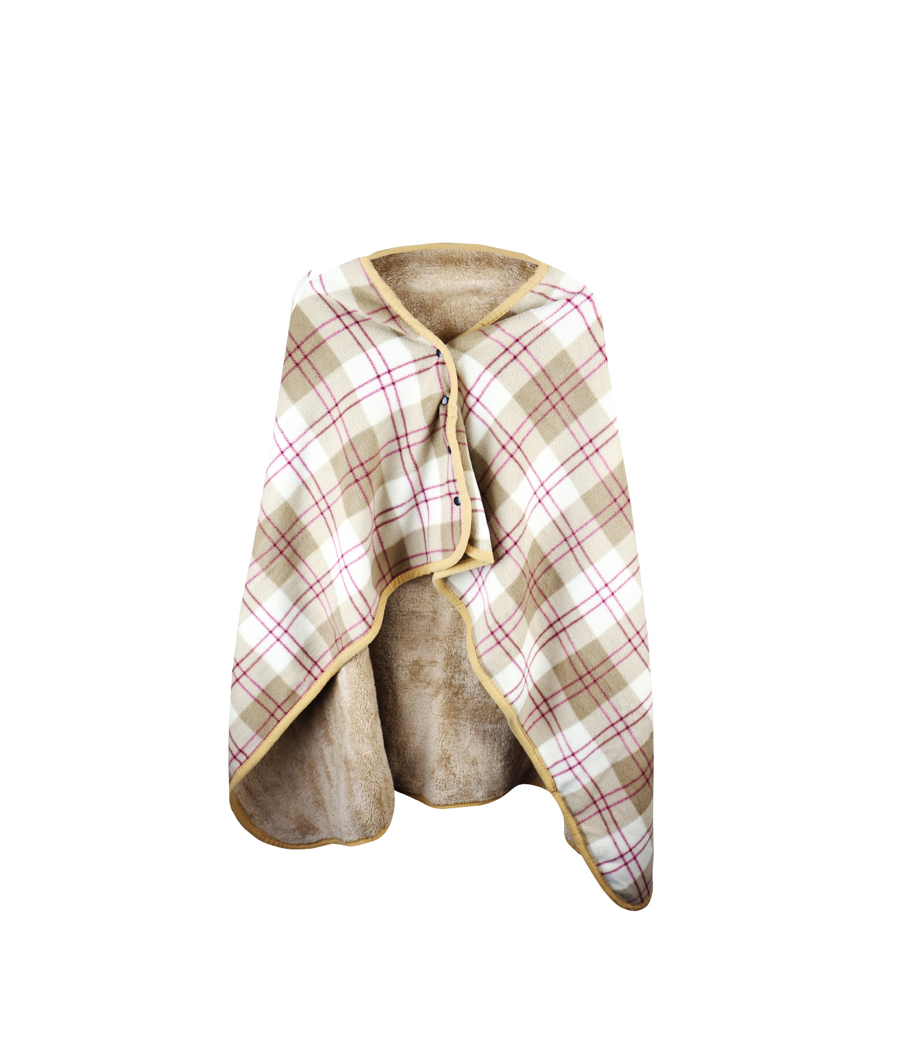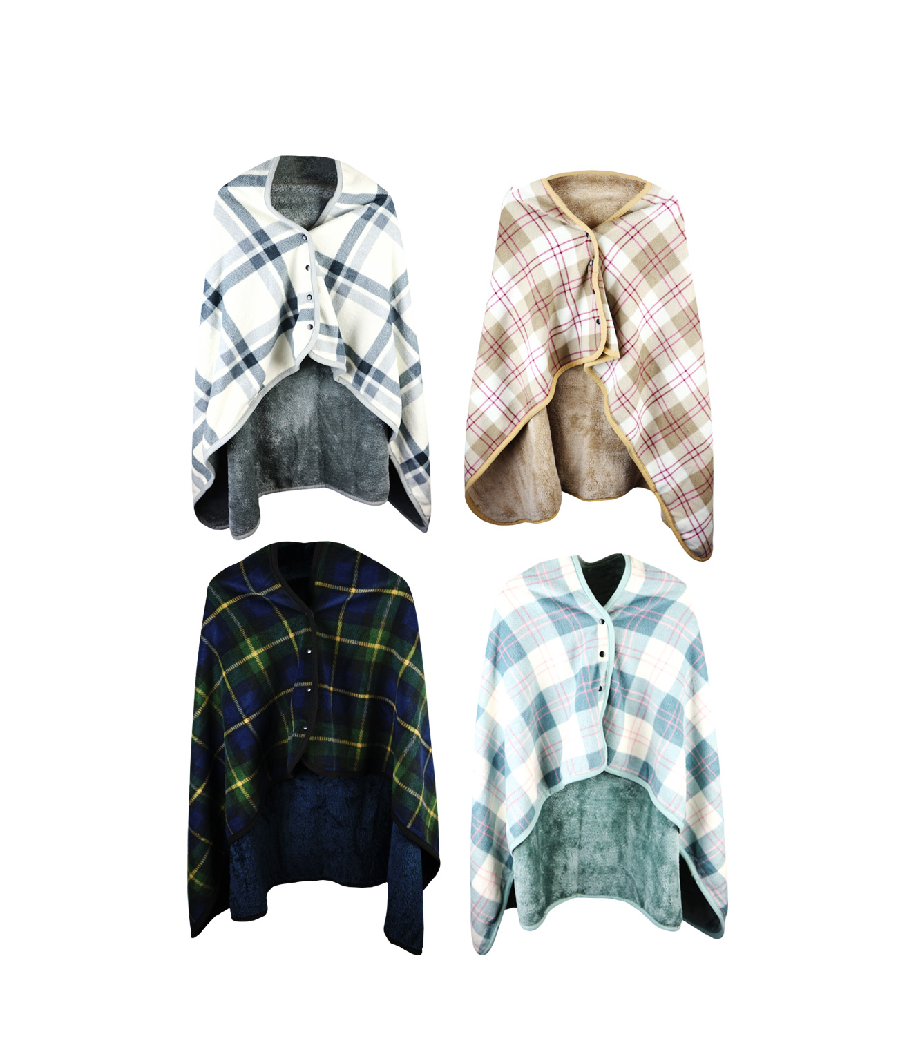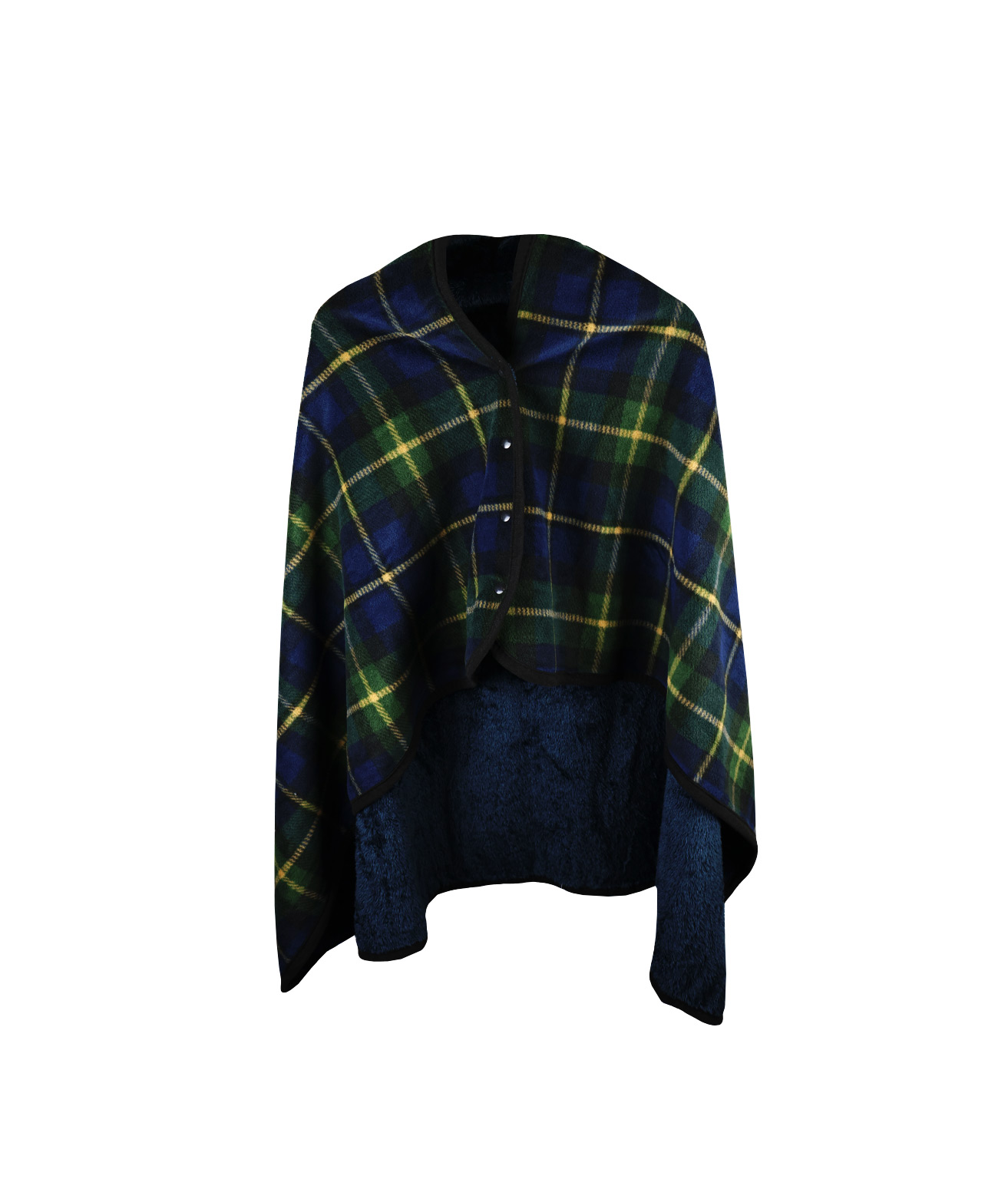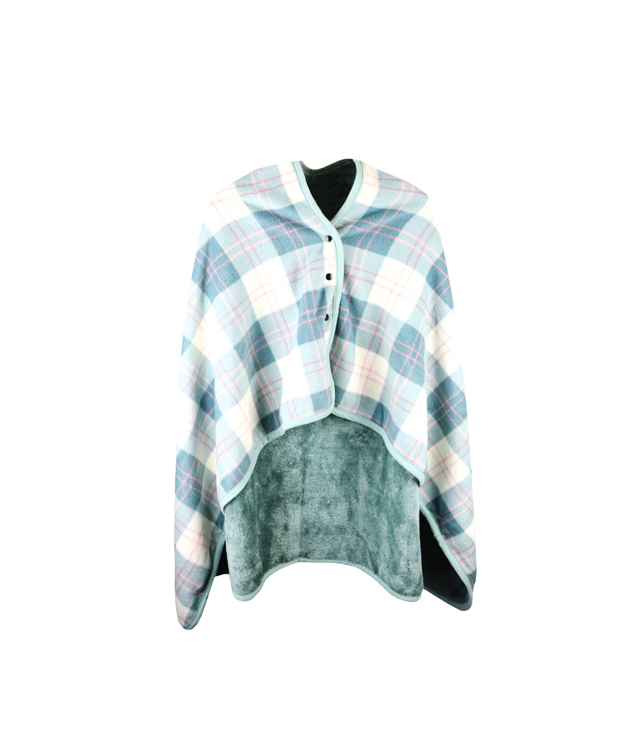 Features buttons which turns into a throw over poncho style blanket when worn.