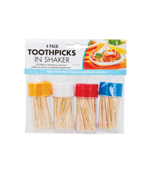 Keep your toothpicks neatly organized and easily accessible with our Toothpicks in Shaker Container 4-Pack.