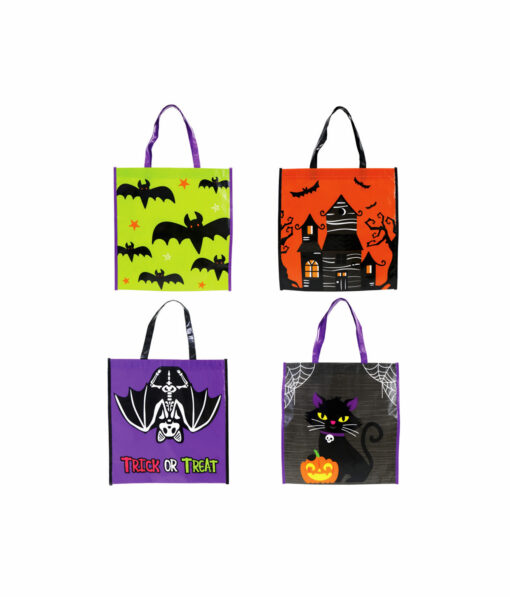 Featuring spooky designs including bats, skeleton bats, black cats, and haunted houses, these bags add festive flair to your trick-or-treating fun.
