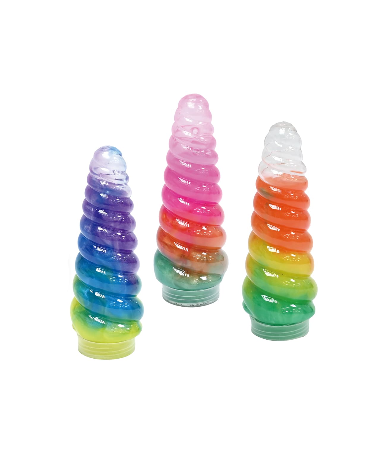 This unicorn horn slime assorted is a whimsical, stretchy sensory toy shaped like a unicorn horn, perfect for magical play, stress relief, and creative fun.