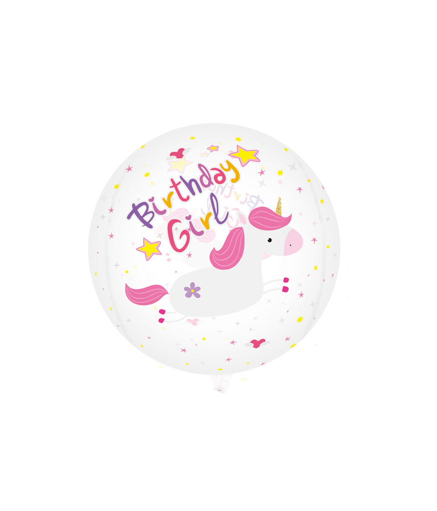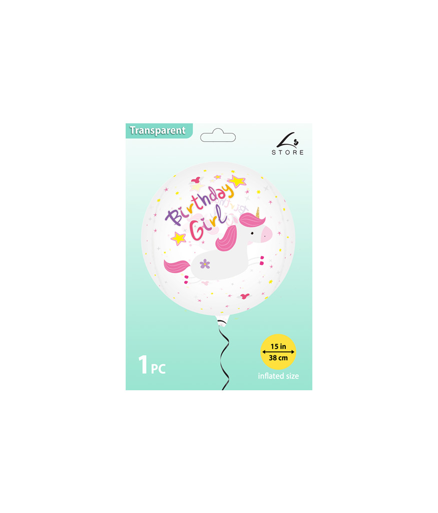 Featuring our transparent sphere balloon which comes with unicorn print and text “birthday girl”