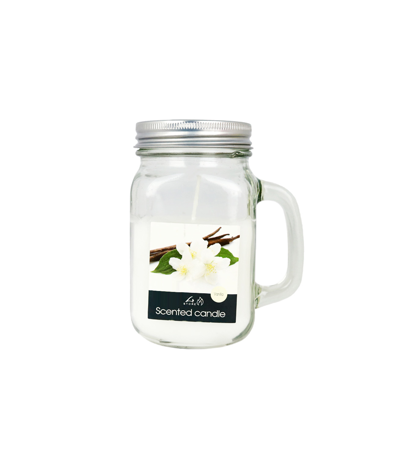 This scented candle comes in its own glass jar and is filled with paraffin wax scented oil.