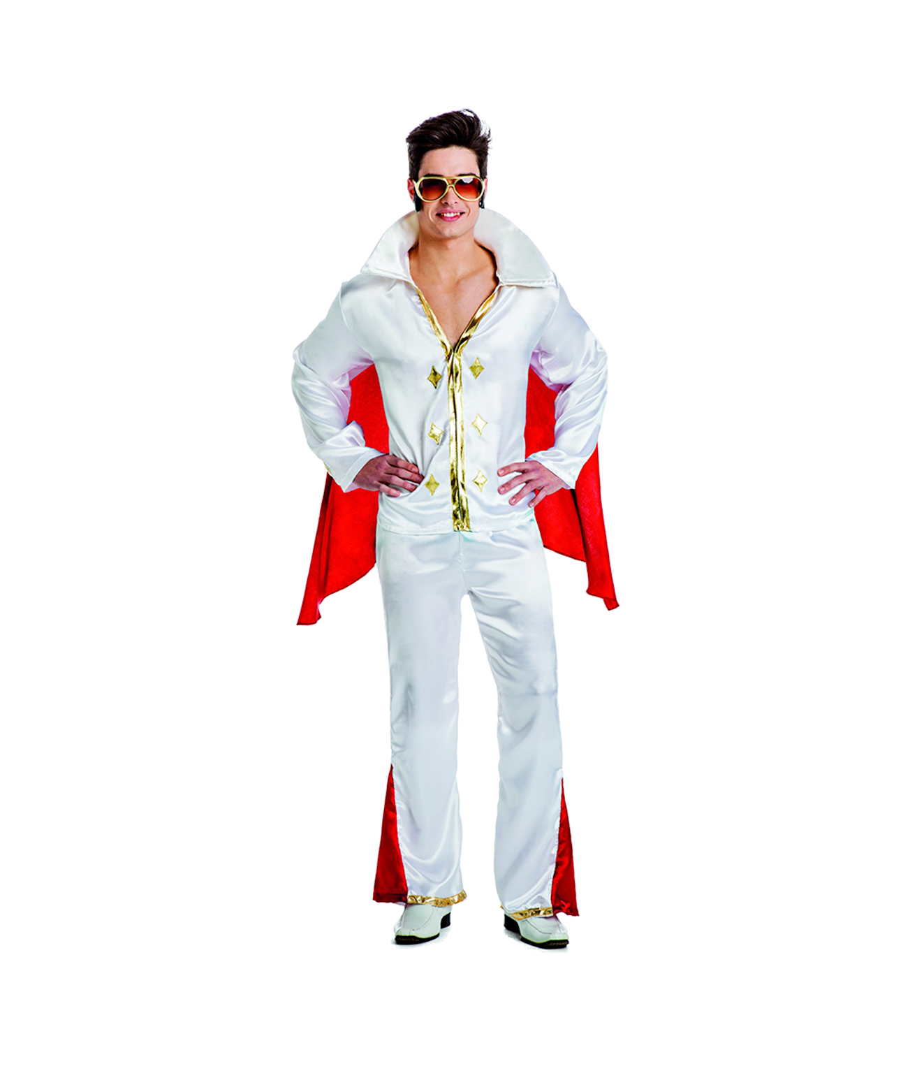 This flamboyant ensemble pays homage to the King of Rock and Roll, capturing the iconic Vegas-era Elvis Presley style.