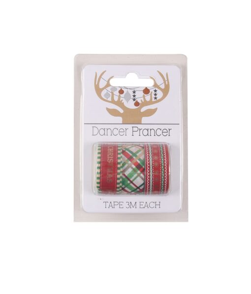 Each pack includes three rolls of decorative tape, perfect for scrapbooking, gift wrapping, or festive projects.