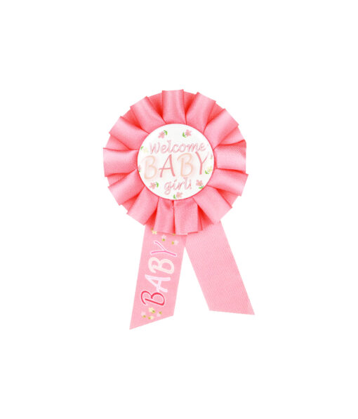Featuring our baby shower rosette badges.