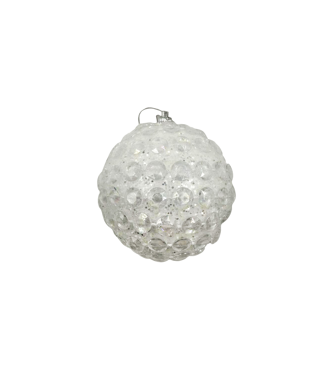 Create a serene and sparkling look with the White Christmas Ball With Iridescent White Bead Chain 8cm.