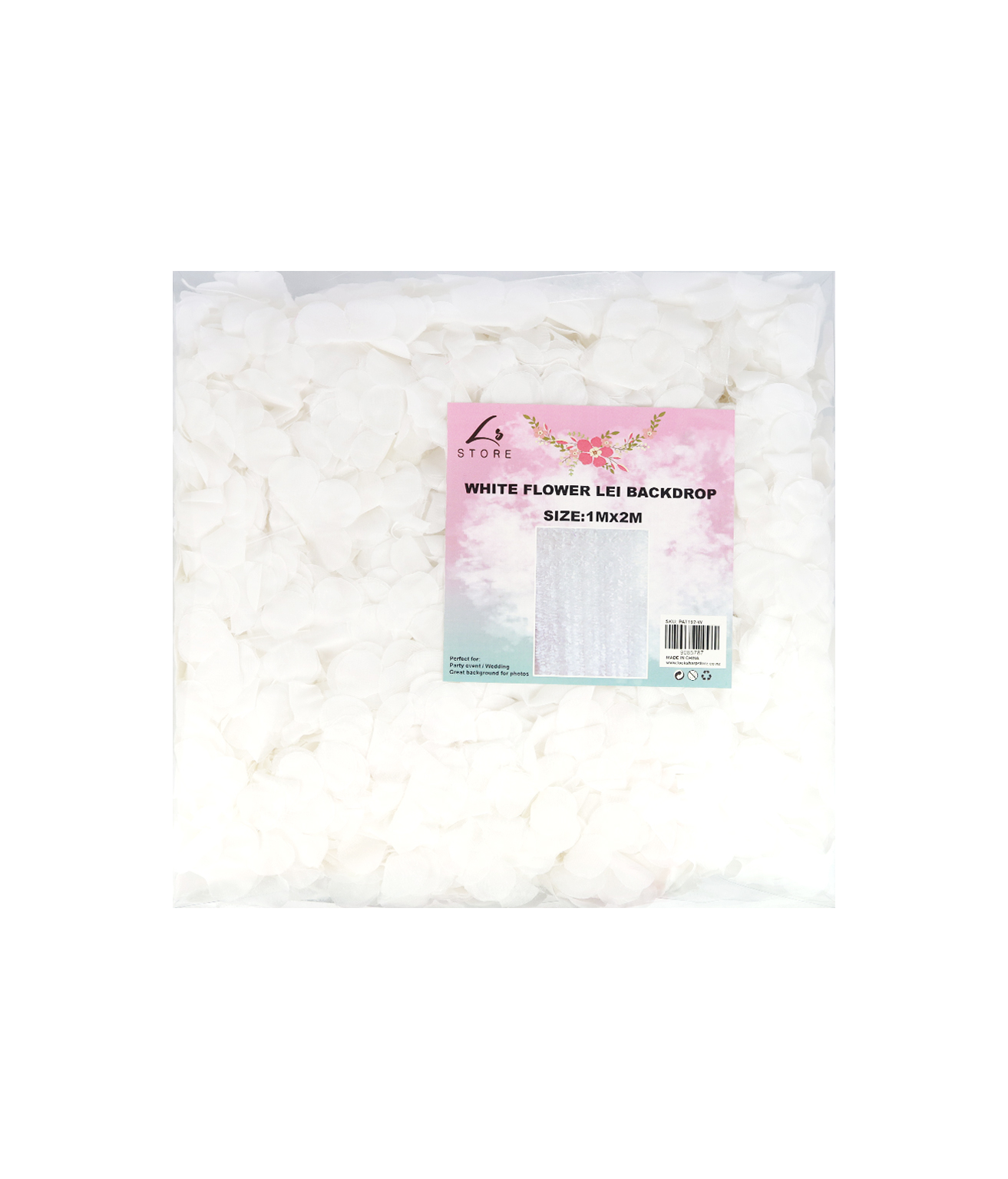 White Flower Lei Backdrop measuring 1x2m, perfect for adding an elegant and tropical touch to your party or event.