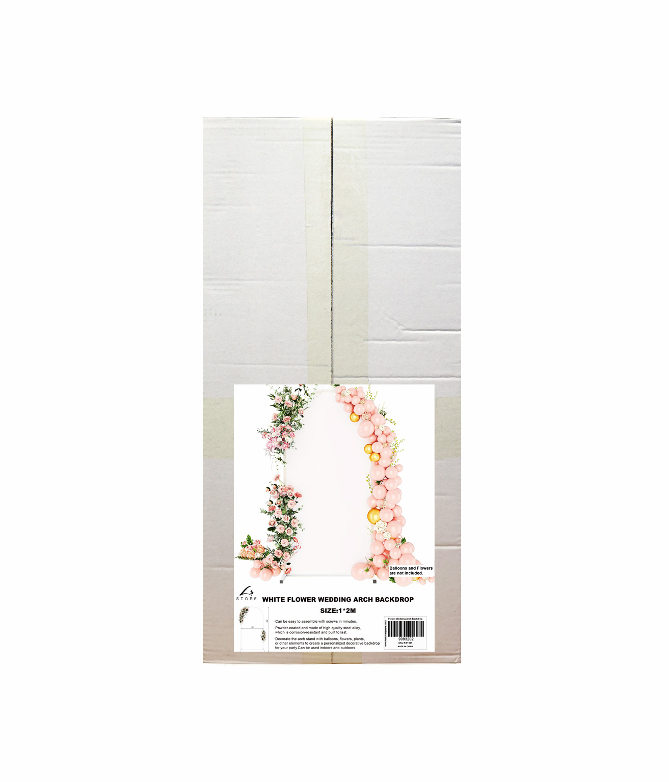 Standing at 1.2m tall and adorned with elegant white florals, it’s the perfect romantic focal point for weddings, engagements, or special events.