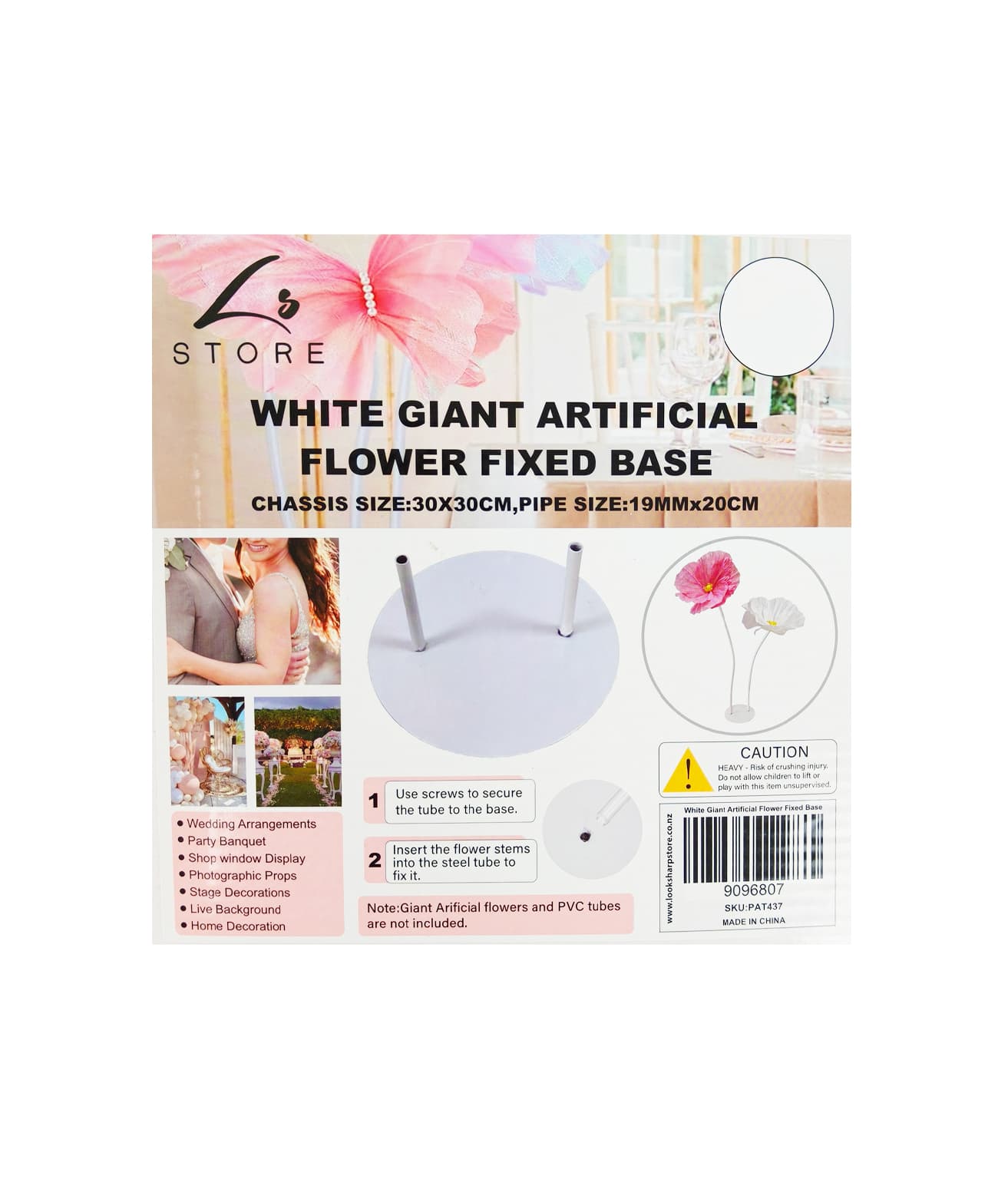 This White Giant Artificial Flower Fixed Base is a sturdy, professional display stand designed to support large artificial flowers, ideal for weddings, parties, and event decor.