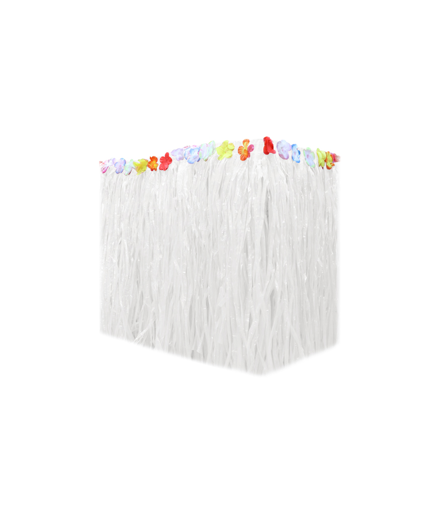White Luau table skirt measuring 75x274cm, perfect for adding a clean and festive touch to your party or event tables.