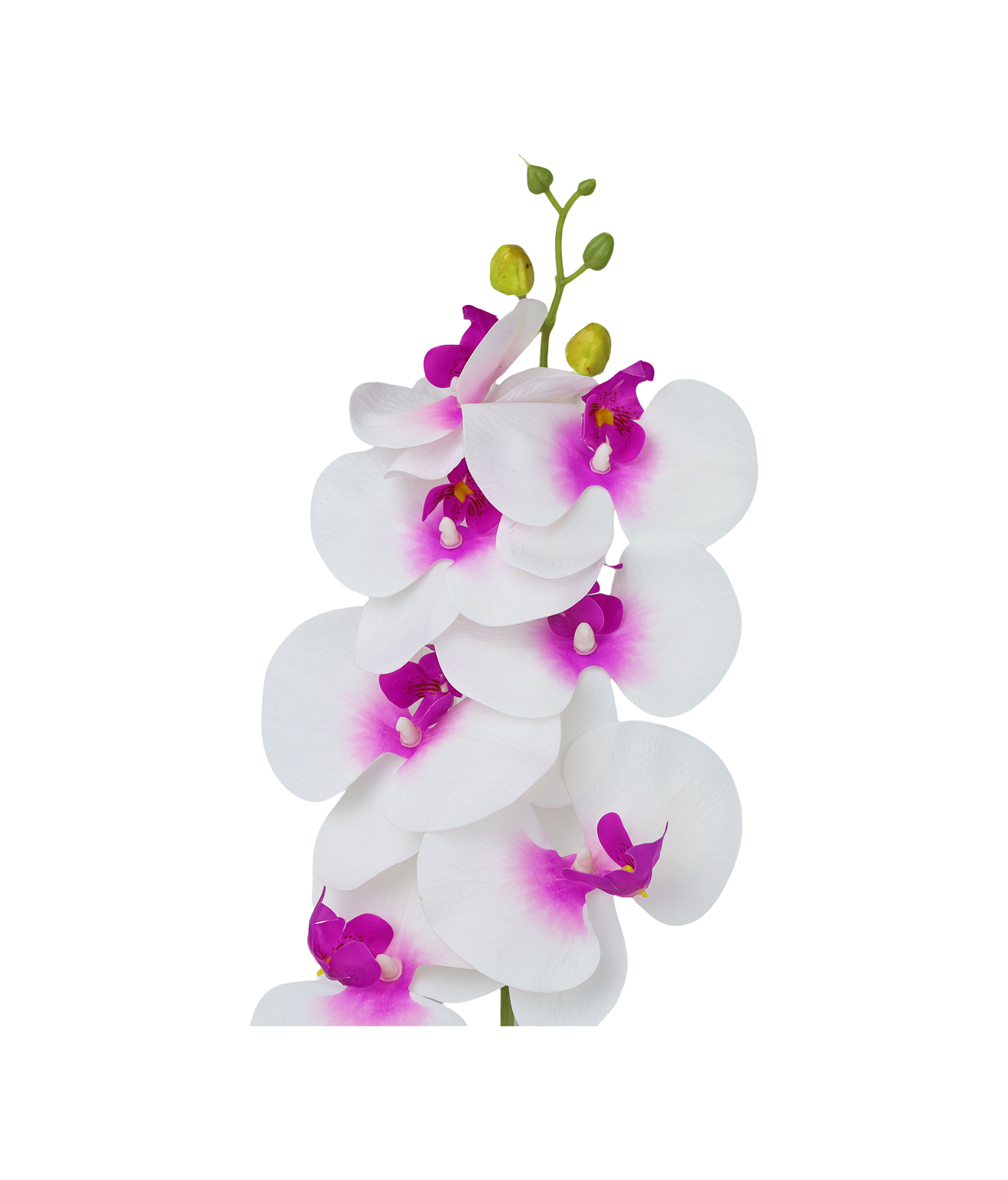 Elevate your space with our lifelike White Orchid With Purple Stamen 88cm.