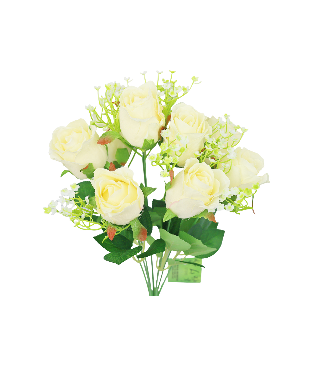 Elevate your space with our lifelike White Rose Bush 9 Heads 38cm.