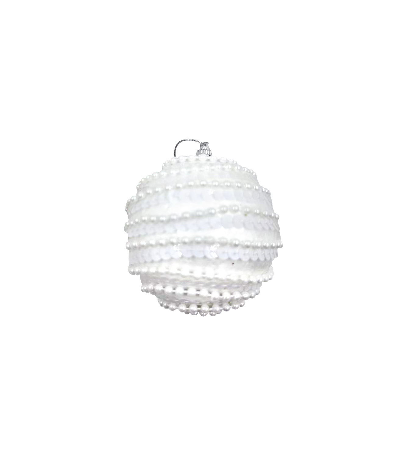 Add a soft shimmer to your festive decor with the White Sequin Christmas Ball With White Beads 8cm.